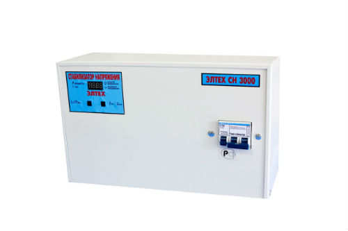 Однофазный стабилизатор ЭЛТЕХ СН3000 используется для того, чтобы стабилизировать подачу энергии в цепи питания однофазных бытовых приборов, офисной техники и некоторых промышленных агрегатов. Суммарная мощность всего подключенного к сети оборудования не должна превышать 3000Ва (3кВа). В механизм стабилизатора заложен трехкратный запас по мощности. Благодаря этому, возможно подключение электроинструмента, оснащенного электродвигателем прямого пуска.